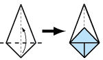 3. Using the creases you have made, Bring the top 3 corners of the model down to the bottom corner. Flatten model.