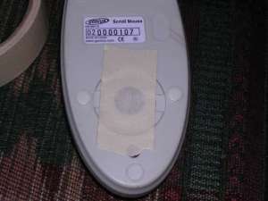 Take a piece of clear tape and place it over the mouseball. This will prevent the mouse ball from turning and frustrate the user. Or use a piece of electrical or masking tape to cover the infrared sensor.