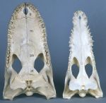 In terms of physical differences the easiest way to tell the difference between the two is that a crocodile has a very long, narrow, V-shaped snout, while the alligator’s snout is wider and U-shaped. Because of the wide snout of the alligator it packs more crushing power to eat prey like turtles that constitute part of its diet. The narrow crocodile snout, although still very powerful, is not really suited for prey like turtles but is very versatile for fish and mammals.