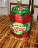 1. Drain the liquid from the pickle jar. Reserve for making pucker pops (just freeze on popsicle sticks).
