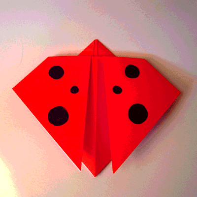 | 5. Now fold this corner upwards, and flatten. | 6. Turn back over. Finished Ladybug |