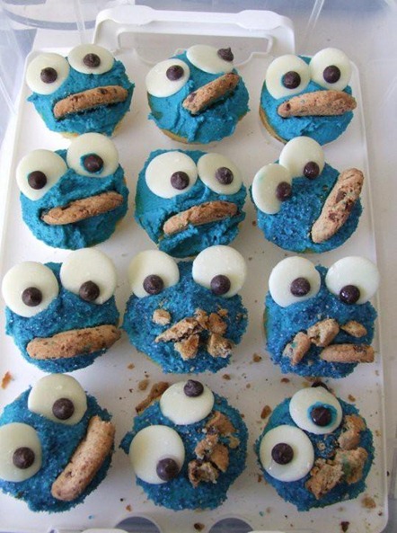 Lastly, put the cupcakes on a fun designed tray or serving platter. Enjoy like the cookie monster would!
