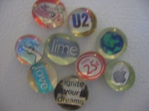 4. Put glue on the back side of the clear pebble and add your cut out picture to it.