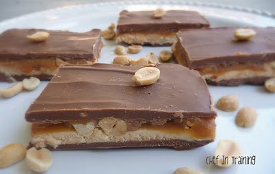 Unwrap and melt the caramels with the cream in the microwave, stirring every 30 seconds until melted. Carefully spread over filling layer.