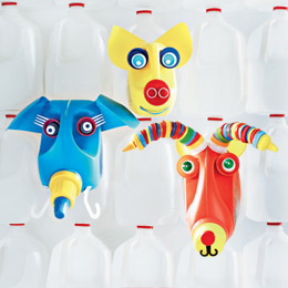 To liven up the laundry room, mount a menagerie of plastic-jug trophy heads. Our hunting grounds yielded the makings of a pig, a warthog, and an antelope, but your recycling bin may suggest a different animal collective.