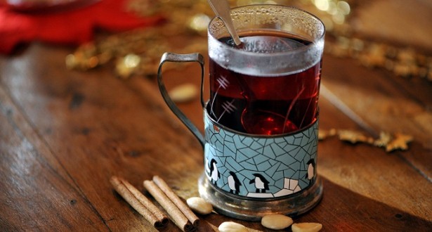 1. Add the following to a large saucepan: 2 bottles of pinot noir, 200ml brandy, 300g sugar, 5 cloves, 2 cinnamon sticks, 5 teaspoons of allspice and 1 star anise.