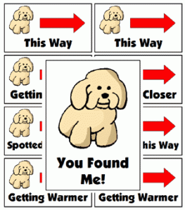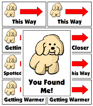 Hide the puppy, then set up the clues.