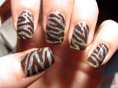 Check out Daily Nail’s WILD idea! Use base coat of glitter and dark brown for stipes as in photo. Top with a clear coat.
