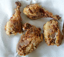 - Drain chicken on paper towels or a cooling rack. Sprinkle with salt to taste. Serve warm, at room temperature, or chilled.