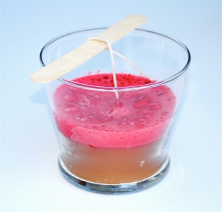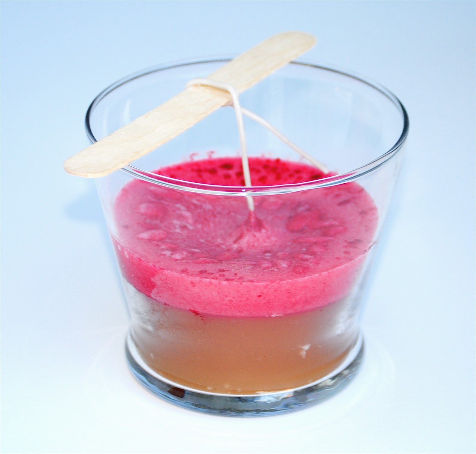 Step 4: Once the first layer of wax was completely hard, I melted the next candle down on the stove and poured it over the first layer. Repeat with one more layer or until your glass container is full.