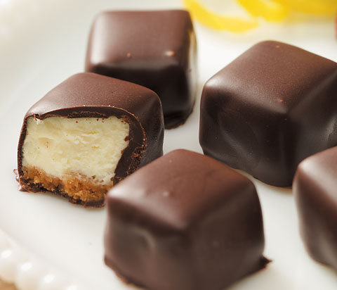 - Using a toothpick, completely dip squares, one at a time, in melted chocolate. Place on waxed paper-lined baking sheets; spoon about 1 teaspoon chocolate over each. (Reheat chocolate if needed to finish dipping.) Let stand for 20 minutes or until set. Store in an airtight container in the refrigerator or freezer. Yield: 49 squares.