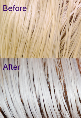 Some great TIPS HERE at kristadior for bleaching hair white. Lots of good info – check it out before you buy your supplies, read the whole article for her hit and miss suggestions.
