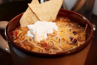 Put chopped onion, cans of beans, rotel, corn, chicken broth, water, and spices in CrockPot and stir to mix. Put chicken breasts on top of mixture and make sure they’re at least partly submerged in liquid. Cook on high 6-7 hours or low 8-9 hours. Before serving remove the chicken breasts from soup and shred, if needed, (sometimes they’ll just fall apart on their own, but sometimes they need some help). Return chicken to CrockPot, stir to combine