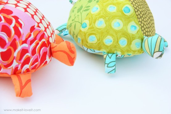 I’m loving these cute little fabric animals. These turtles remind me of the fabric cardinals I made earlier. Check out the complete step by step instructions for the turtles HERE.