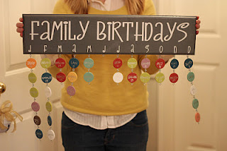 • Cami color coded the circles by families (There are 9 kids in her family!). Then just write their names on the circles and the # of the day in the month their birthday is on. We hung ours in numerical order.