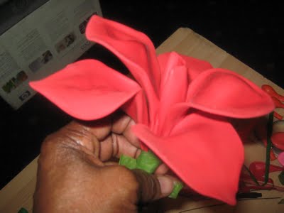 Yesterday’s fabric flowers reminded me of a craft that I saw 10 years ago or more. Flowers made from balloons and floral wire.