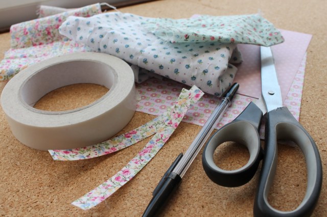 Cut a rectangle of fabric the length of the inner tube and approx 2cm wide. Cover the fabric with the double sided sticky tape then carefully wrap this around the inner tube by rolling it, making sure it is all securely stuck down.