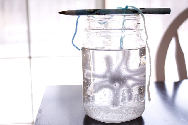 4. Attach your pipe cleaner shape to the string and hang it from the pen/pencil while submerging it in your jar.