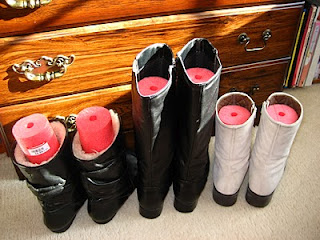 Saw lengths of pool noodles to fit into your boots. Keeps them from getting that dreaded crease. Great idea via