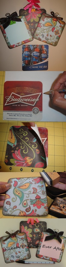 You’ll Need:- -Restaurant coasters from places like On the Border, Chili’s, etc.