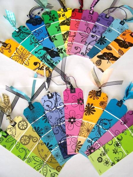Stamped Paint Chip Bookmarks