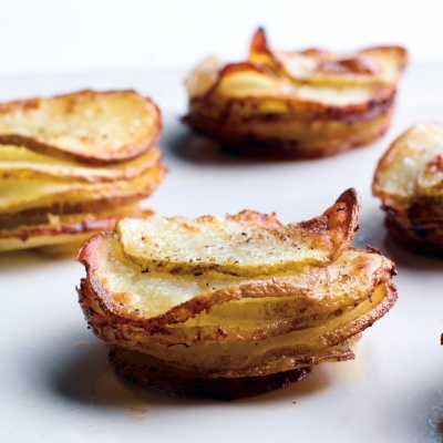 - Preheat oven to 400 degrees F. Lightly brush 6 standard muffin cups with butter. Thinly slice potatoes. Place 2 slices in each cup and season with salt and pepper. Continue adding potatoes, seasoning every few slices, until cups are filled. Pour 1 tablespoon heavy cream over each. Bake until potatoes are golden brown and tender when pierced with a knife, 30 to 35 minutes. Run a thin knife around each gratin. Place a baking sheet or large plate over pan and invert to release gratins. Flip right side up and serve.