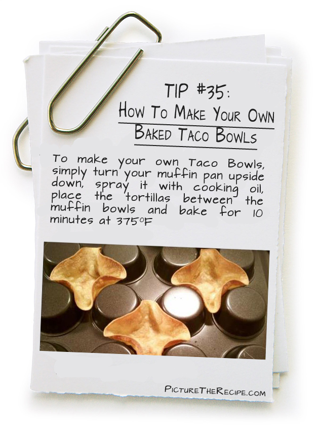 Baked Taco Shells and Bowls Genius! via Share this: Click to share on Facebook (Opens in new window) Facebook Click to share on X (Opens in new window) X Click to print (Opens in new window) Print Click to share on Tumblr (Opens in new window) Tumblr Click to email a link to a friend (Opens in new window) Email Like Loading... Related $ave itDinner - Eat it!Kitchen