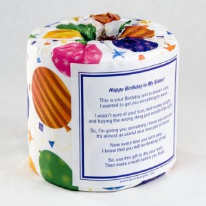 “This is your Birthday and to show I care, I wanted to get you something to wear…I wasn’t sure of your size, and money is tight, and buying the wrong thing just wouldn’t be right… So, I’m giving you something I know you can use; It’s almost as useful as a new pair of shoes. Now every time you sit to pee, I know that you will be thinking of me! So, use this gift to dry your tush, Then make a wish before you flush.”