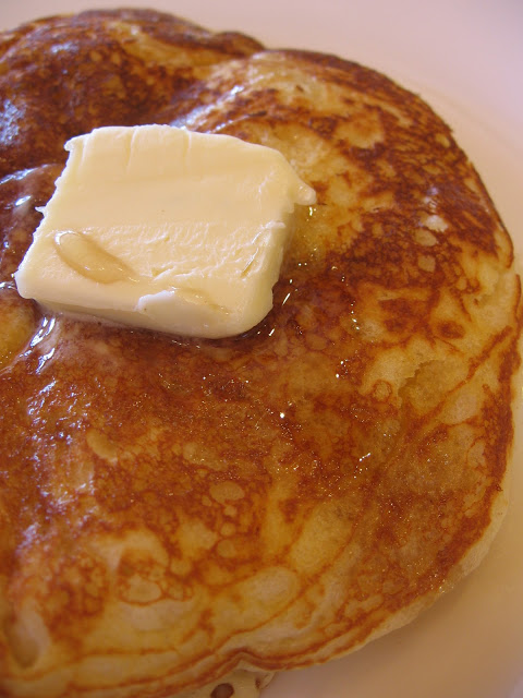 reblogged from Cookin’ Up North: Stir together the flour, baking soda, baking powder,and salt. Mix the egg with the buttermilk and add to the flour mixture, stirring only until smooth. Add the melted butter and sugar. Fry on a greased griddle. Serves 4.