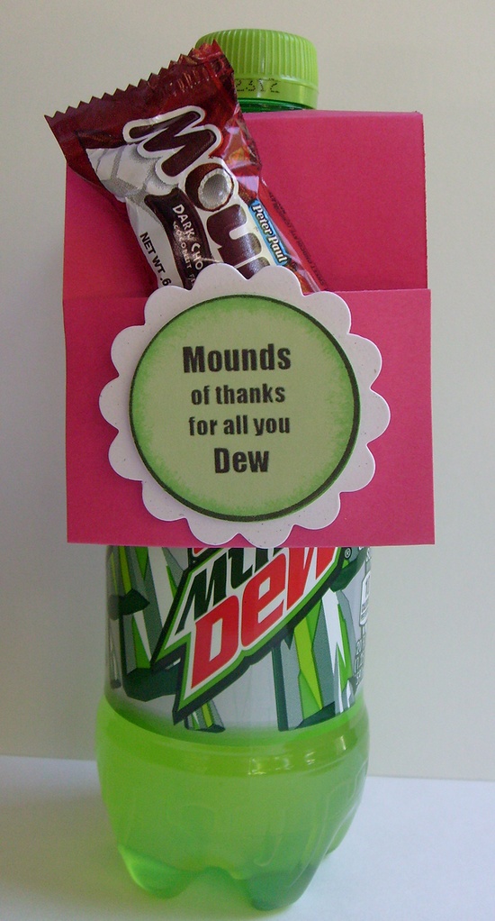 Cute volunteer appreciation gift or for any occasion where you need to show thanks to someone. Instructions and print outs HERE – See below how the envelope fits on the top of the bottle.. A circle is punched out to fit the cap. – genius!