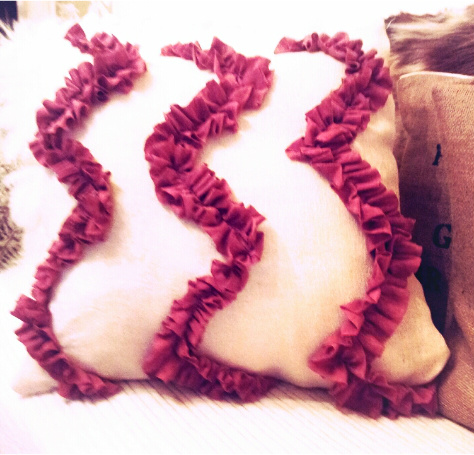 Ruffled Chevron Pillow Cute! Recycle old t-shirts to make the ruffles. Instructions HERE Share this: Click to share on Facebook (Opens in new window) Facebook Click to share on X (Opens in new window) X Click to print (Opens in new window) Print Click to share on Tumblr (Opens in new window) Tumblr Click to email a link to a friend (Opens in new window) Email Like Loading... Related Around the houseCraftsGift itRecycle itSewing