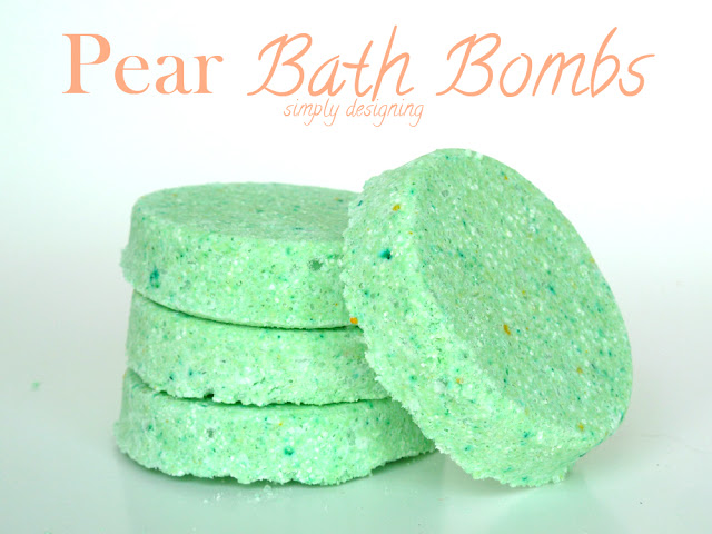 DIY Bath Bombs 1 c cornstarch 1 c baking soda 1/4 c epsom salt 1 c citric acid pear essential or fragrance oil green food coloring water in spray bottle soap mold Click HERE for the instructions Share this: Click to share on Facebook (Opens in new window) Facebook Click to share on X (Opens in new window) X Click to print (Opens in new window) Print Click to share on Tumblr (Opens in new window) Tumblr Click to email a link to a friend (Opens in new window) Email Like Loading... Related $ave itAround the houseGift itKitchenSell it