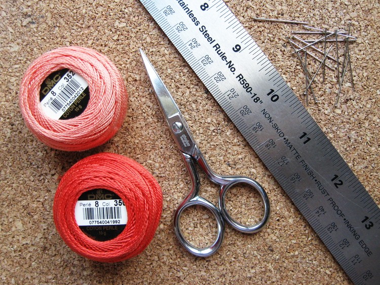 – perle cotton #8, two colors (will be referred to as ‘light’ and ‘dark’ throughout the project)