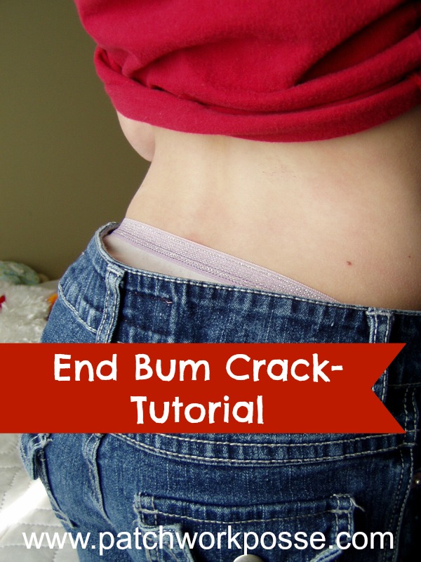 End Bum Crack Pants Fix Tutorial Pretty simple fix with a hidden piece of elastic – check it out HERE Share this: Click to share on Facebook (Opens in new window) Facebook Click to share on X (Opens in new window) X Click to print (Opens in new window) Print Click to share on Tumblr (Opens in new window) Tumblr Click to email a link to a friend (Opens in new window) Email Like Loading... Related Fix itKidsSewingWear it
