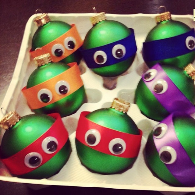 Wrap ribbon around ornament. Glue into place. Glue on Google eyes.