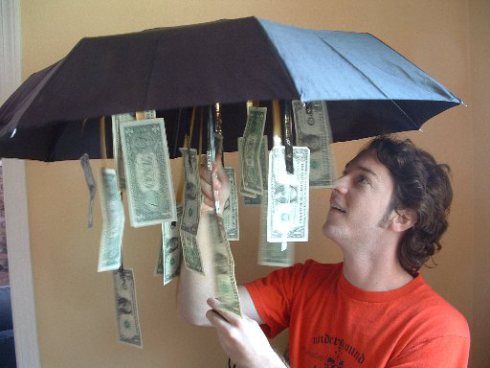 Cute for graduation or birthdays… attach dollars to string and tie into an opened umbrella.