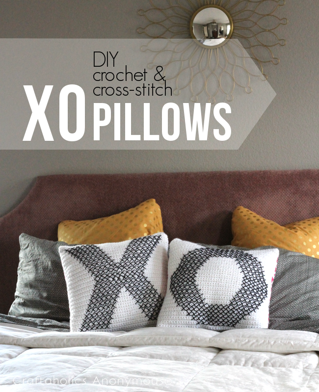 - Worsted Weight Yarn: I used 3 skeins of white Caron Simply Soft to crochet the fronts of my pillows and 1 skein of black for my cross-stitching.