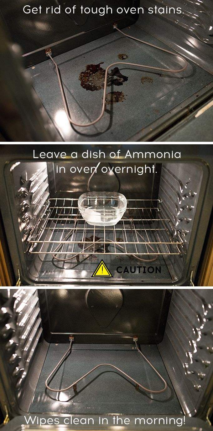 - You don’t need very much ammonia. 1/2 cup is sufficient. More than that and you’re gonna be able to smell it, even with the oven door closed.