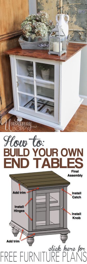 Build Your Own End Tables Click HERE for the instructions Share this: Click to share on Facebook (Opens in new window) Facebook Click to share on X (Opens in new window) X Click to print (Opens in new window) Print Click to share on Tumblr (Opens in new window) Tumblr Click to email a link to a friend (Opens in new window) Email Like Loading... Related $ave itAround the houseGift itSell itWorkshop