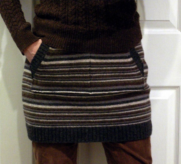 Sweater to Skirt – “Hip Huggie” Materials: 1 felted wool sweater*, preferably a Men’s large pullover 1/2 – 3/4″ waistband elastic Thread Click HERE for the instructions Share this: Share on Facebook (Opens in new window) Facebook Share on X (Opens in new window) X Print (Opens in new window) Print Share on Tumblr (Opens in new window) Tumblr Email a link to a friend (Opens in new window) Email Like Loading... Related Gift itRecycle itSewingWear it