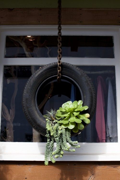 Love this idea! Drill a couple of drain holes in the bottom, add some soil and plants, and hang outside a sunny window from a soffit.