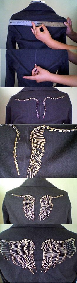 Safety Pin Wings Dress up a plain jacket with wings – Cool! Click HERE for the instructions Share this: Click to share on Facebook (Opens in new window) Facebook Click to share on X (Opens in new window) X Click to print (Opens in new window) Print Click to share on Tumblr (Opens in new window) Tumblr Click to email a link to a friend (Opens in new window) Email Like Loading... Related ArtCraftsRecycle itSell itWear it