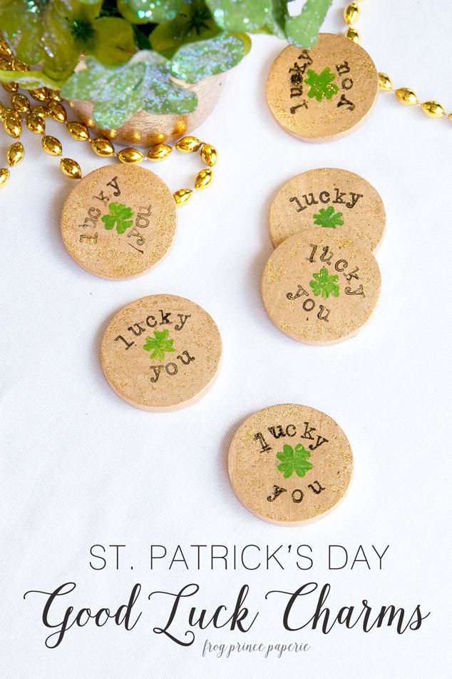Good Luck Charms Unfinished round discs, 1.5 inches Metallic gold paint Letter stamps and black inkpad Green Paint Gold glitter glue Click HERE for the instructions Share this: Share on Facebook (Opens in new window) Facebook Share on X (Opens in new window) X Print (Opens in new window) Print Share on Tumblr (Opens in new window) Tumblr Email a link to a friend (Opens in new window) Email Like Loading... Related CraftsFunGift itHolidaysKidsParty DecorScout MeetingSell it