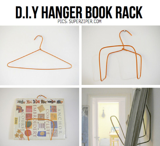 Upcycle an old wire hanger into a wall mount book holder – Nice!