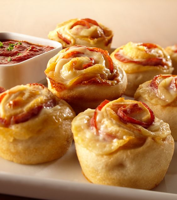 You’ll need: Pizza dough, sliced cheese and pepperonis. Pair with pizza sauce for dipping!