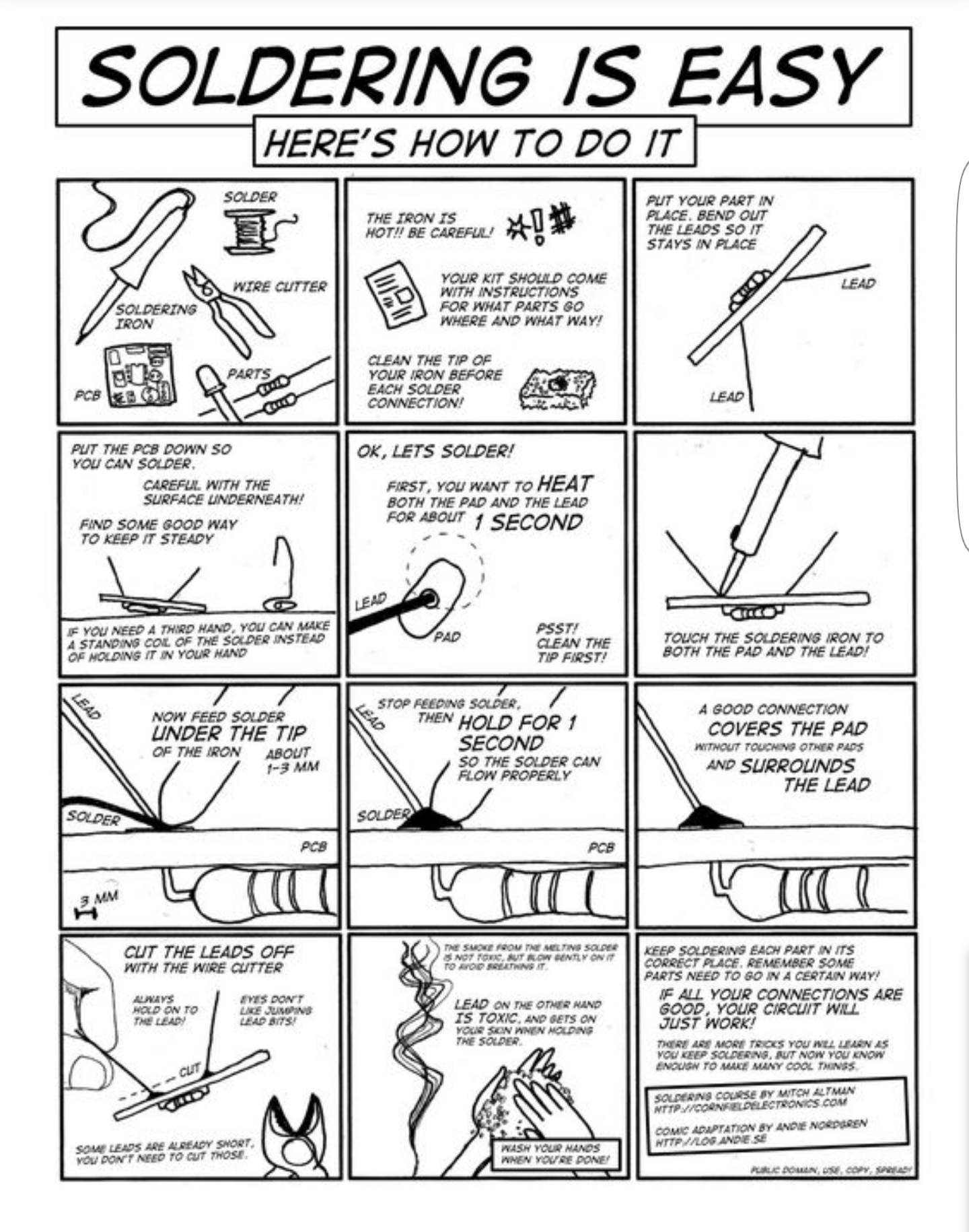 Soldering Tips Soldering takes a bit of practice to get good at. But it’s possible! Via pinterest Share this: Click to share on Facebook (Opens in new window) Facebook Click to share on X (Opens in new window) X Click to print (Opens in new window) Print Click to share on Tumblr (Opens in new window) Tumblr Click to email a link to a friend (Opens in new window) Email Like Loading... Related ComputersFix itReferenceScout MeetingWorkshop