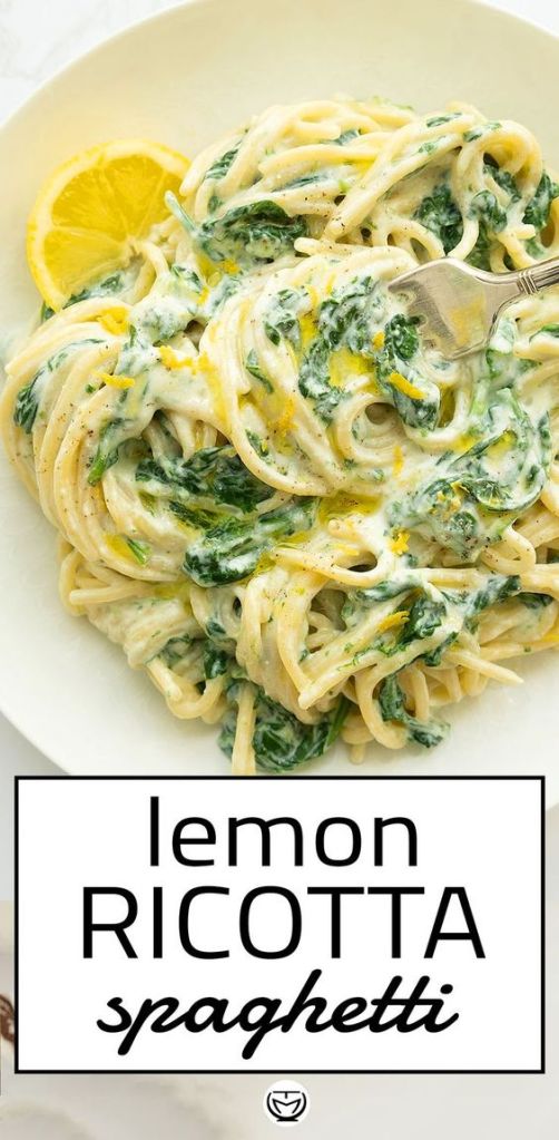 Lemon Ricotta Pasta With Spinach Let your taste buds soar!! PastaRicottaParmesan cheeseBaby spinachLemonExtra virgin olive oilGarlicSalt and pepper Click HERE for the instructions Share this: Click to share on Facebook (Opens in new window) Facebook Click to share on X (Opens in new window) X Click to print (Opens in new window) Print Click to share on Tumblr (Opens in new window) Tumblr Click to email a link to a friend (Opens in new window) Email Like Loading... Related Dinner - Eat it!Kitchen