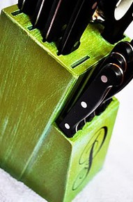 Sand and paint your block to give your kitchen a pop of color. Add your family initial. Would also make a neat wedding gift! Great idea via