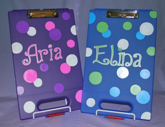 You can even personalize the outside with stickers, paint or paint markers. I like to personalize the back of the clipboard, so the work area is free of bumps. This is great for long drives to keep kids entertained.