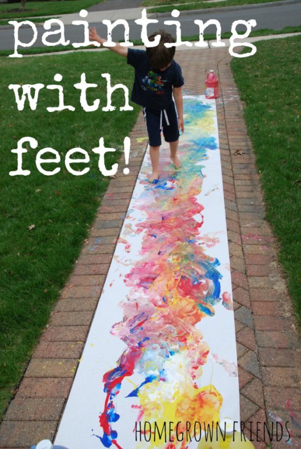 something to hold the paper down (I used gallon size paint containers and rocks)
